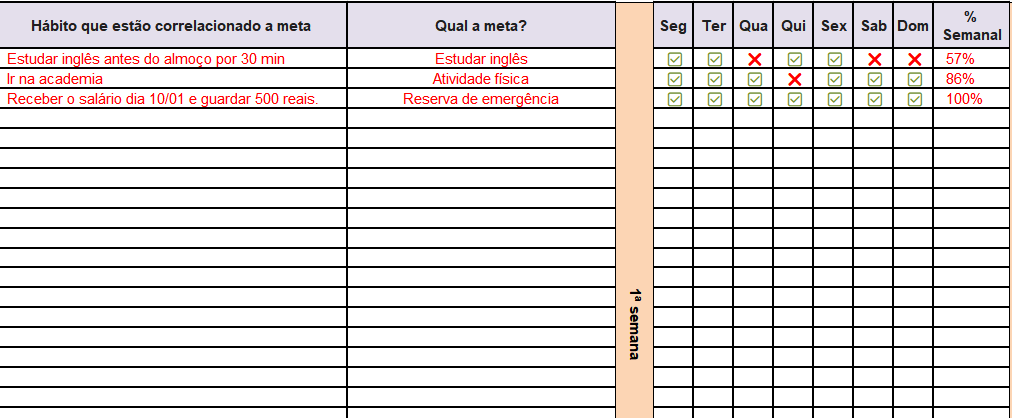 BÔNUS EXCLUSIVO: Planilha de controle de objetivos